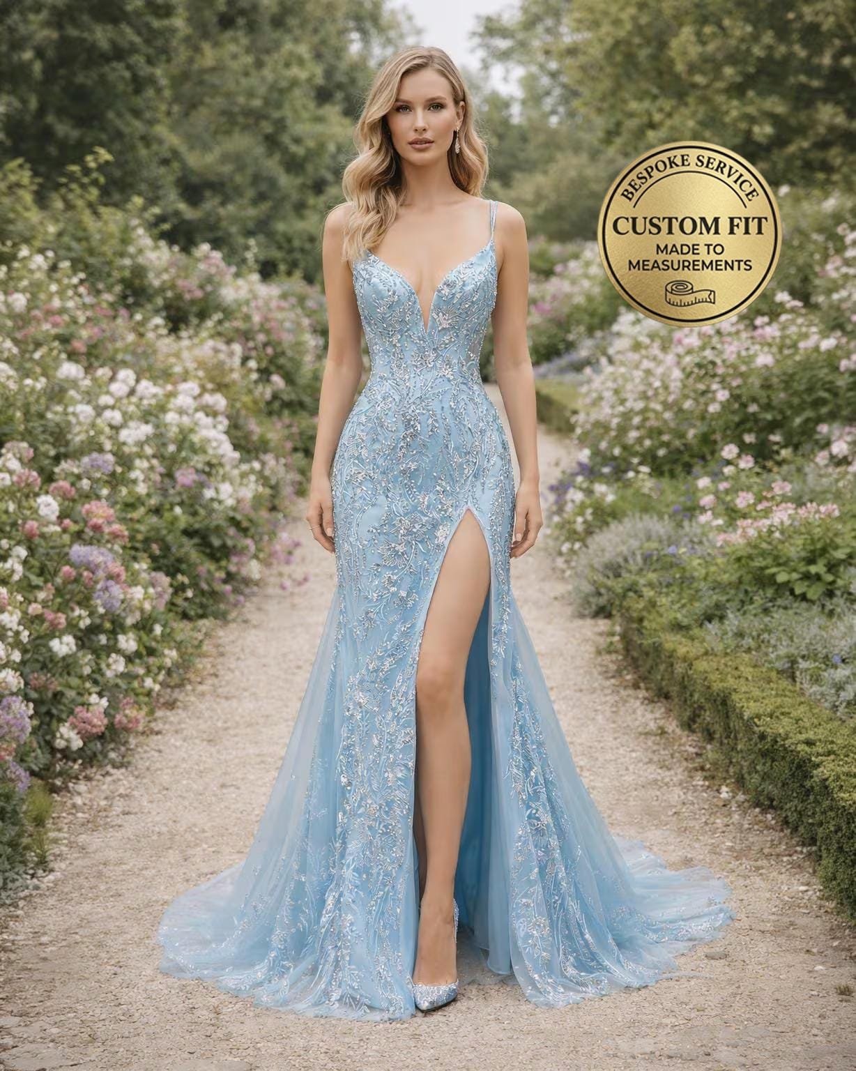 Elevate your presence with this stunning Blue Prom Dress 2026, designed with Glitter Maximalism to capture the essence of 2026 elegance. This Evening Gown is handcrafted to your specific measurements for a flawless silhouette.