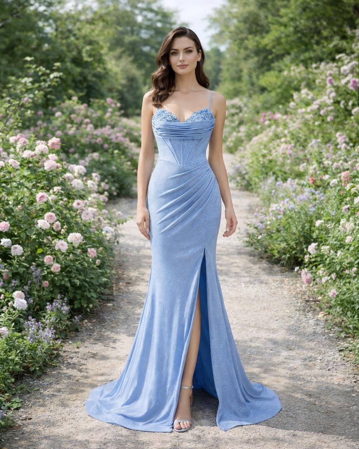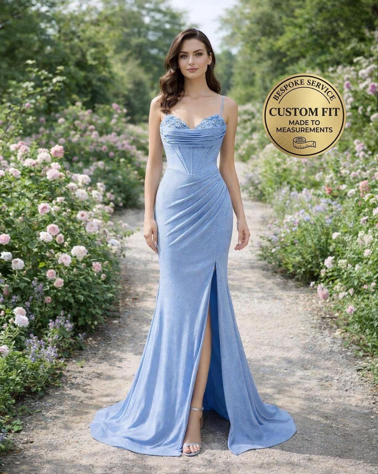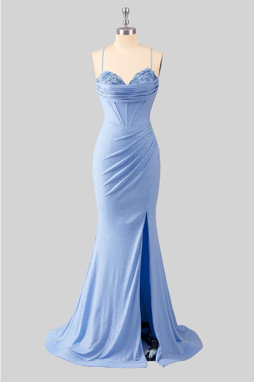 Elevate your presence with this stunning Blue Prom Dress 2026, designed with Glitter Maximalism to capture the essence of 2026 elegance. This Evening Gown is handcrafted to your specific measurements for a flawless silhouette.