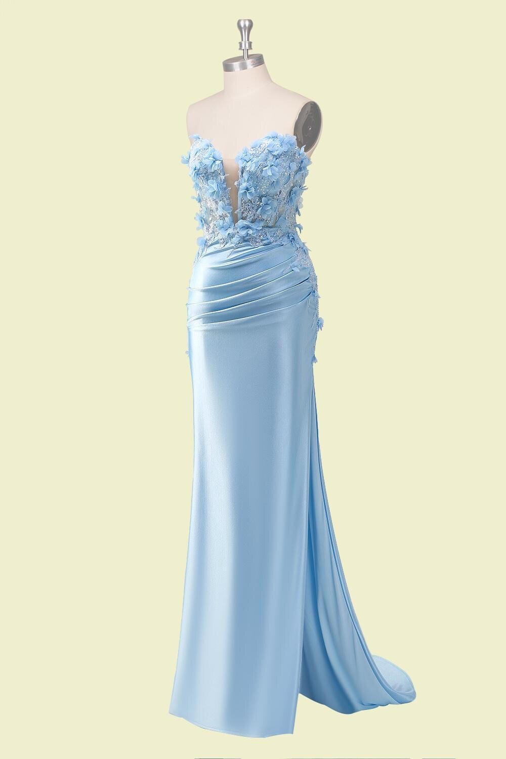 Elevate your presence with this stunning Sky blue Prom Dress 2026, designed with 3D Floral Applique to capture the essence of 2026 elegance. This Evening Gown is handcrafted to your specific measurements for a flawless silhouette.