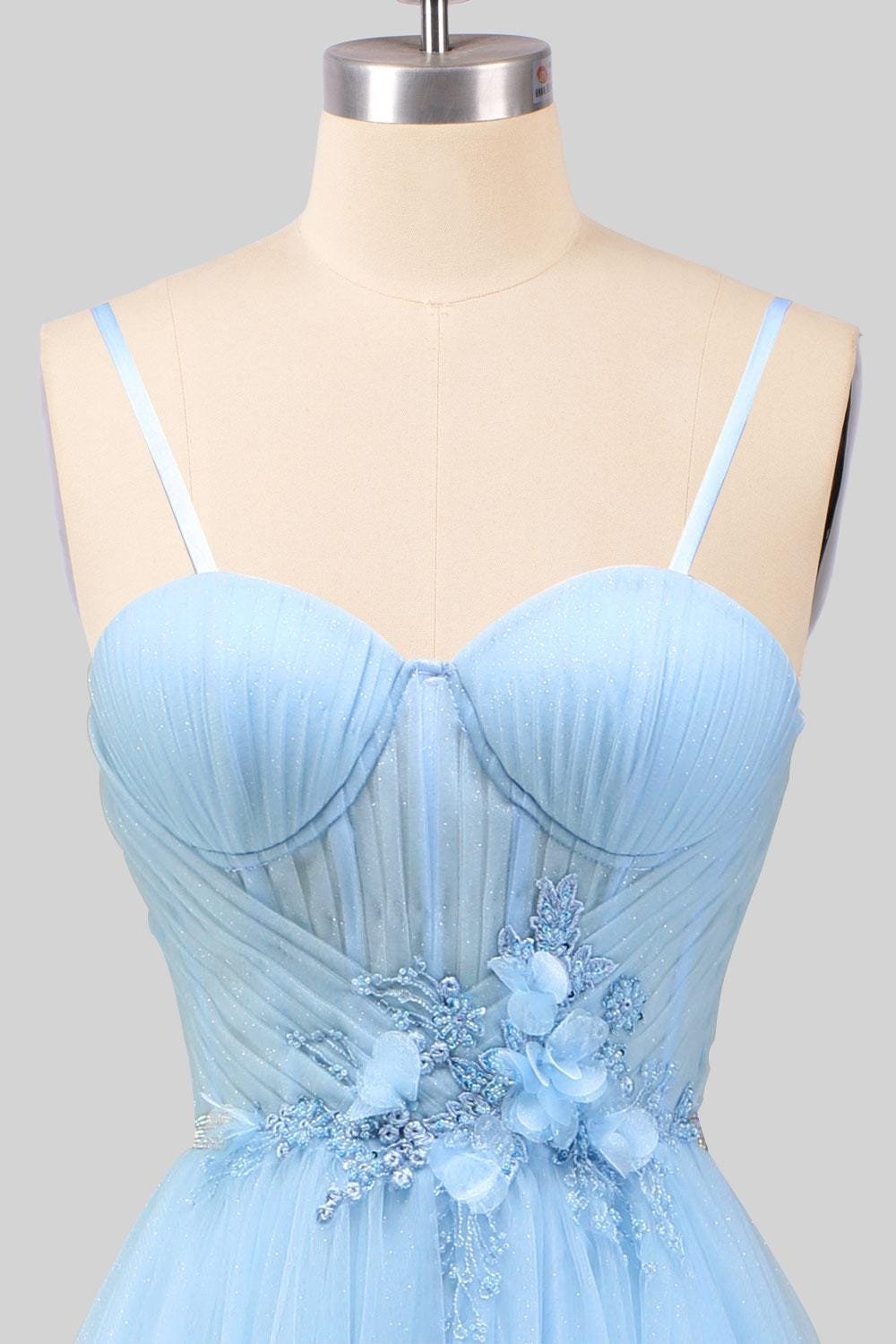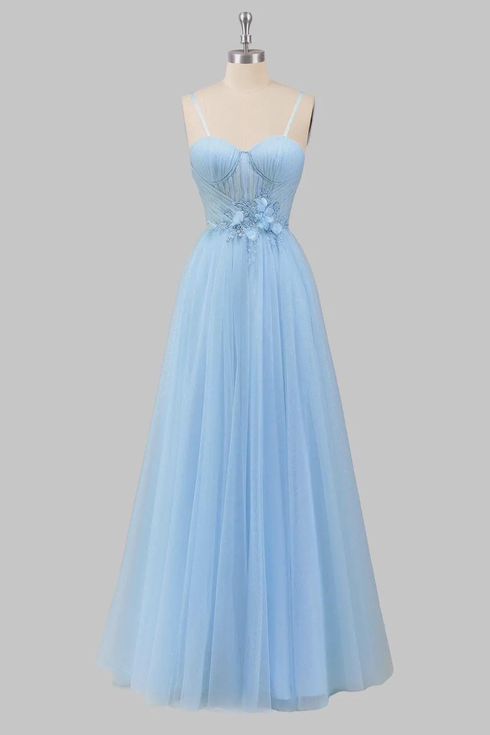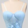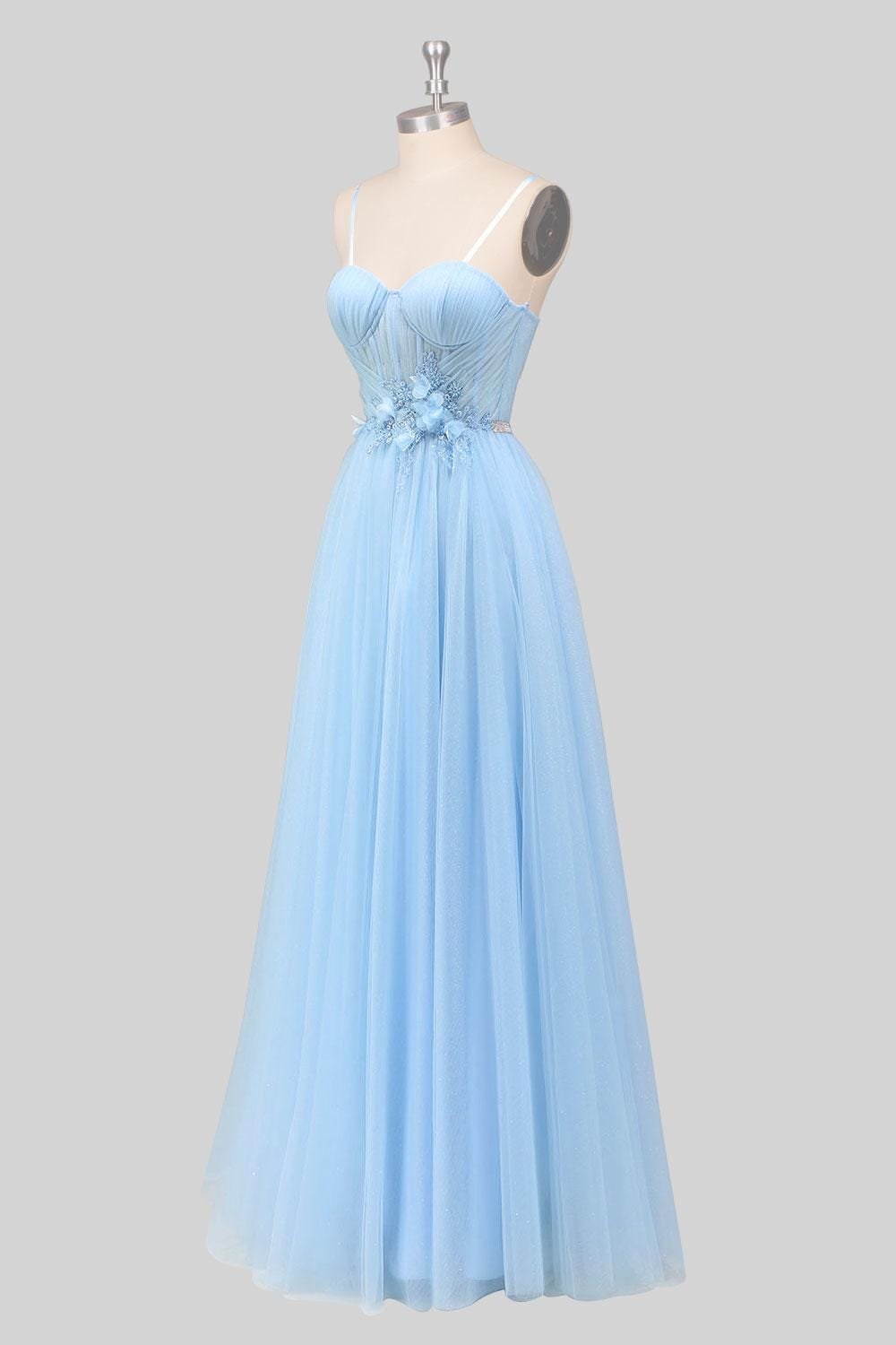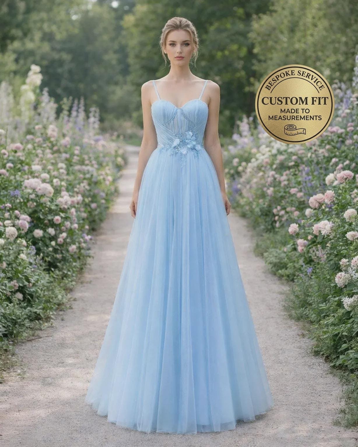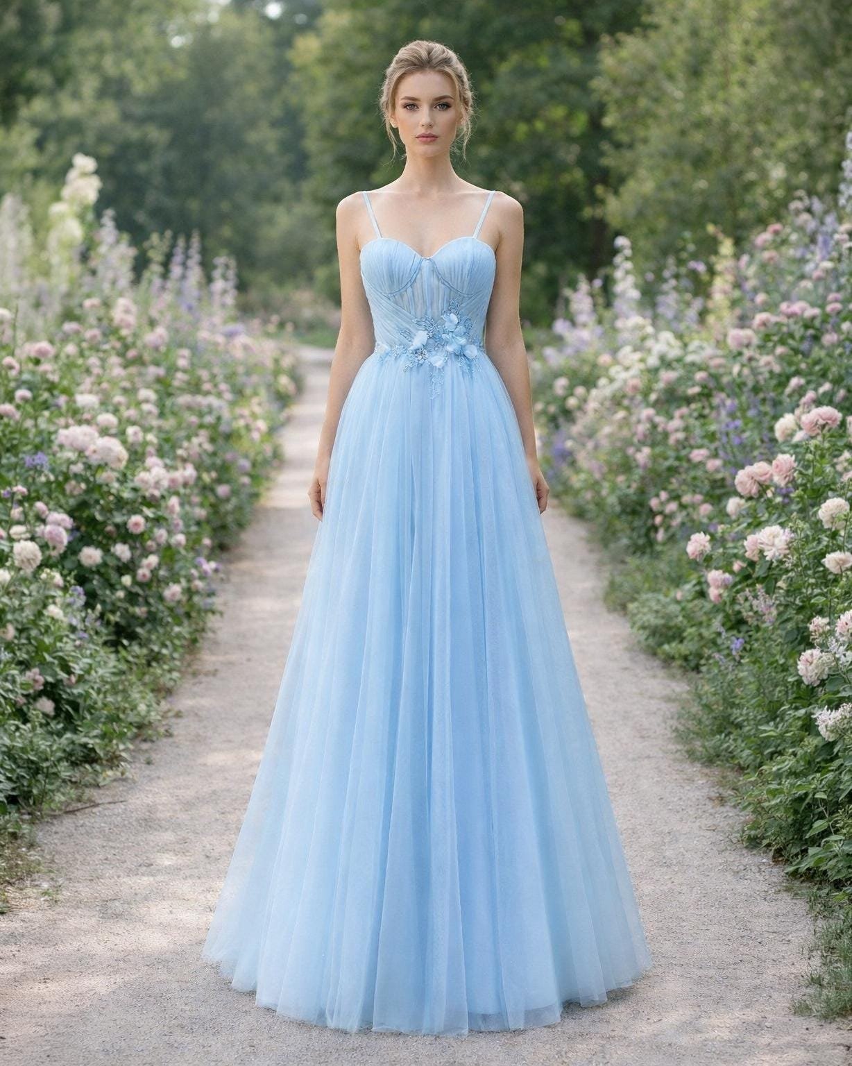 Blue Wedding Dress 3D Floral Applique, Custom Made Beaded Bridal Gown, Outdoor Wedding Wear