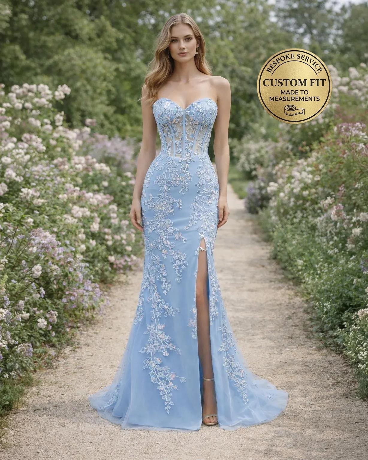 Elevate your presence with this stunning Blue Wedding Dress, designed with 3D Floral Applique to capture the essence of 2026 elegance. This Bridal Gown is handcrafted to your specific measurements for a flawless silhouette.