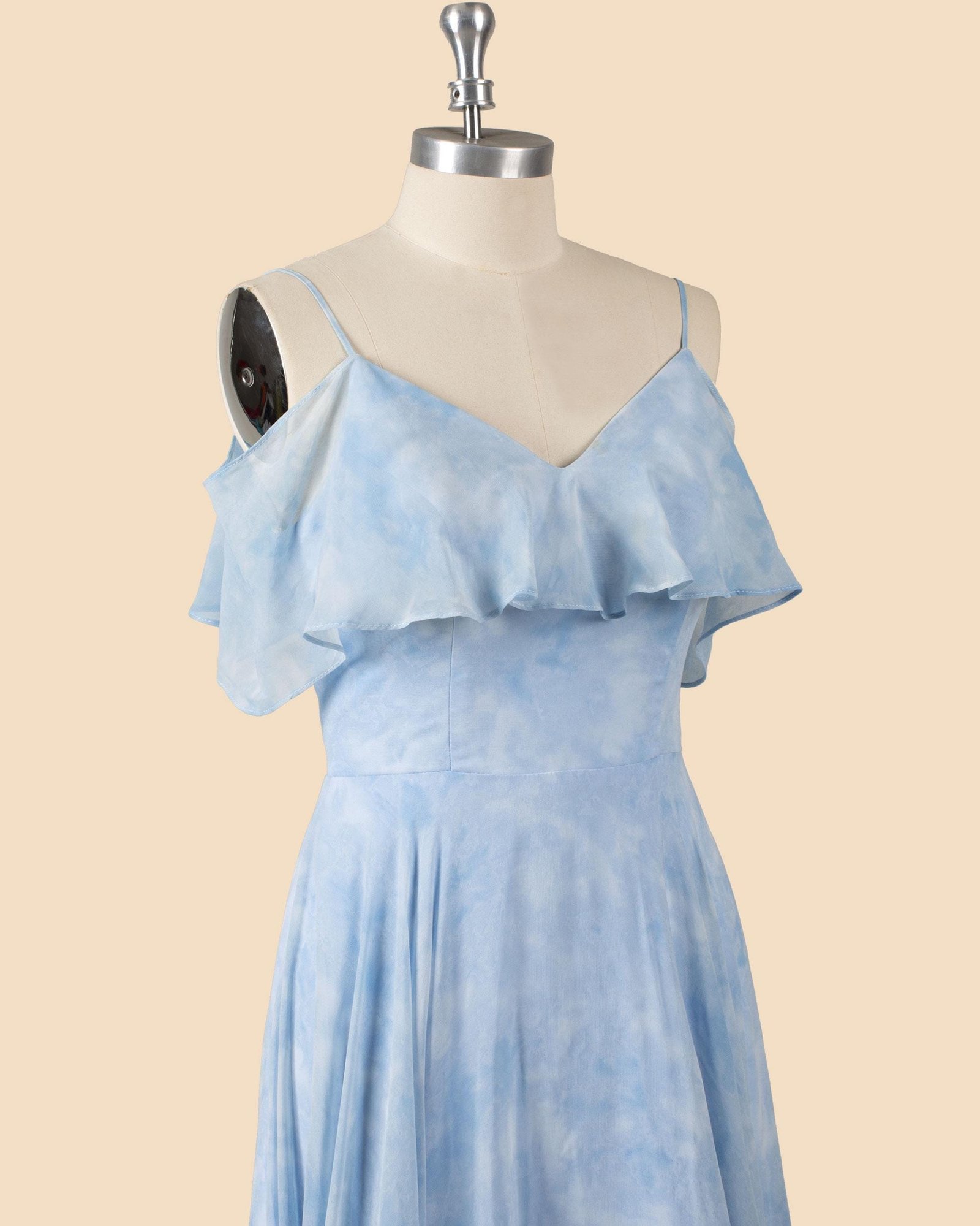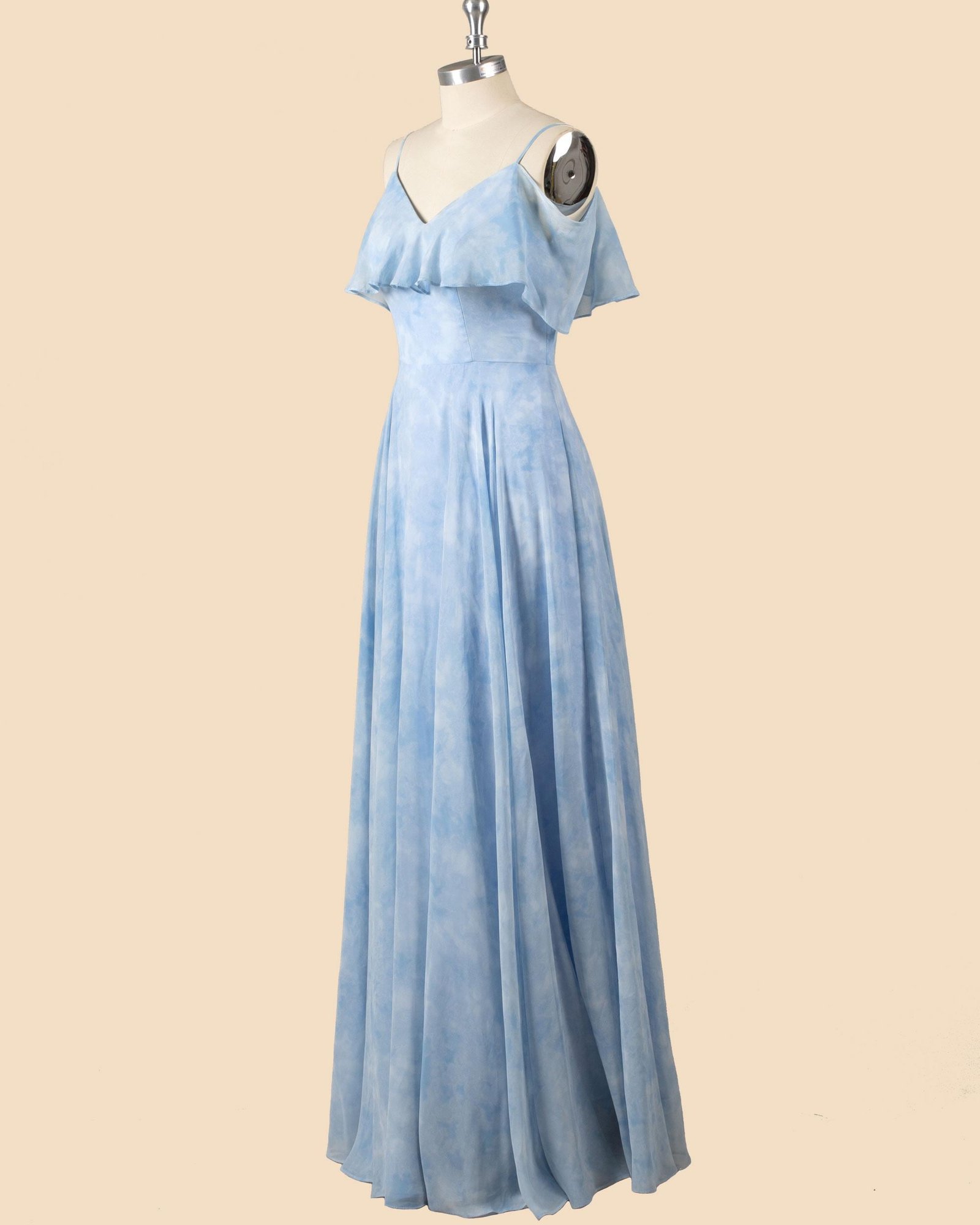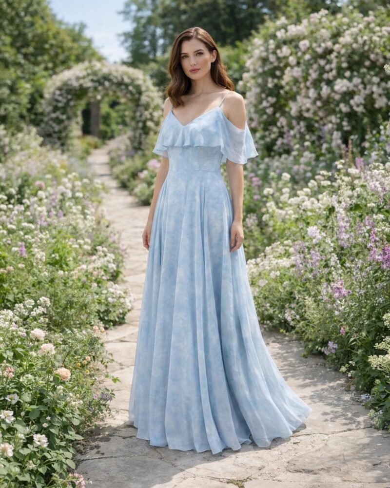 Blue Wedding Dress 3D Floral Applique, Custom Made printed Bridal Gown, Outdoor Wedding Wear