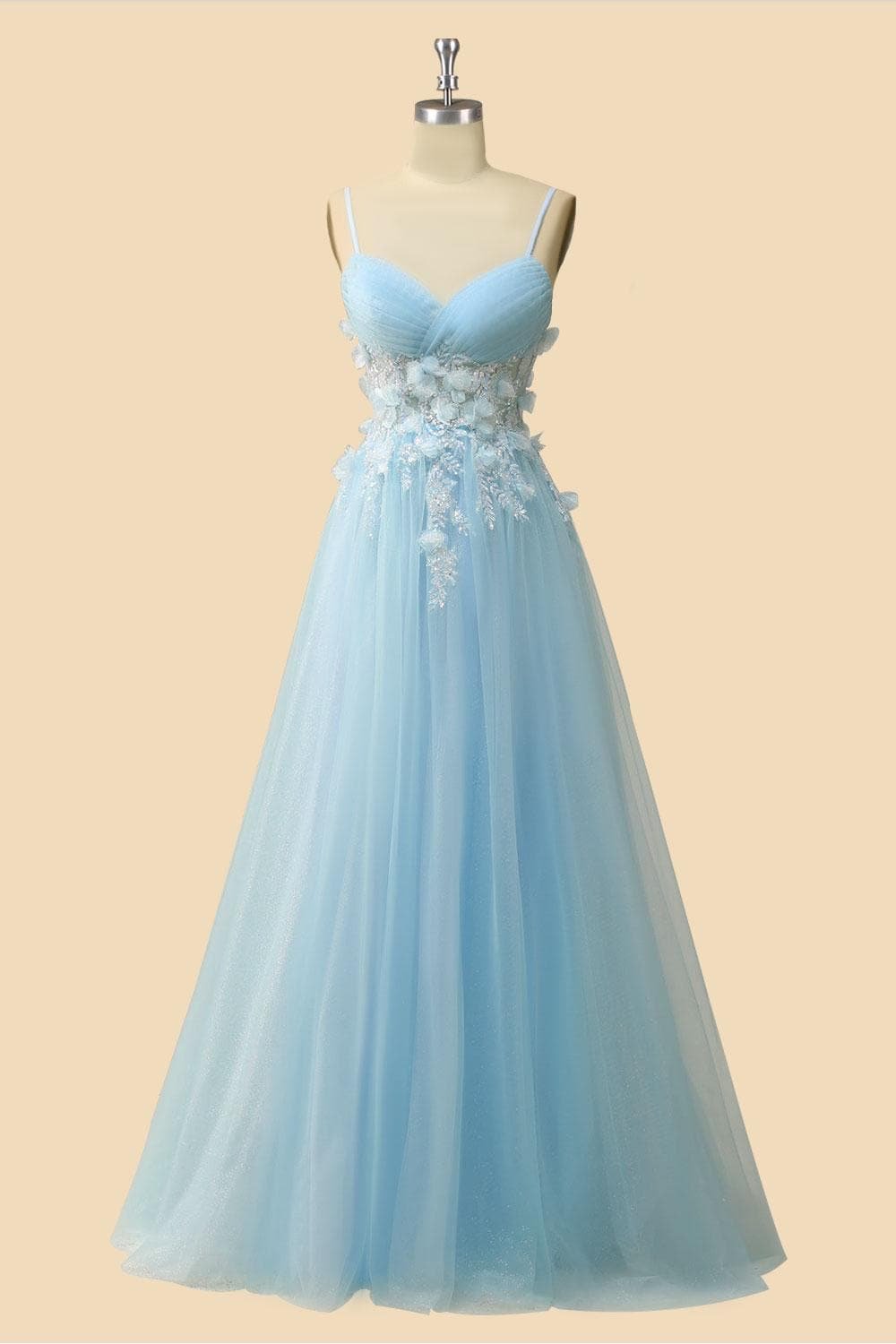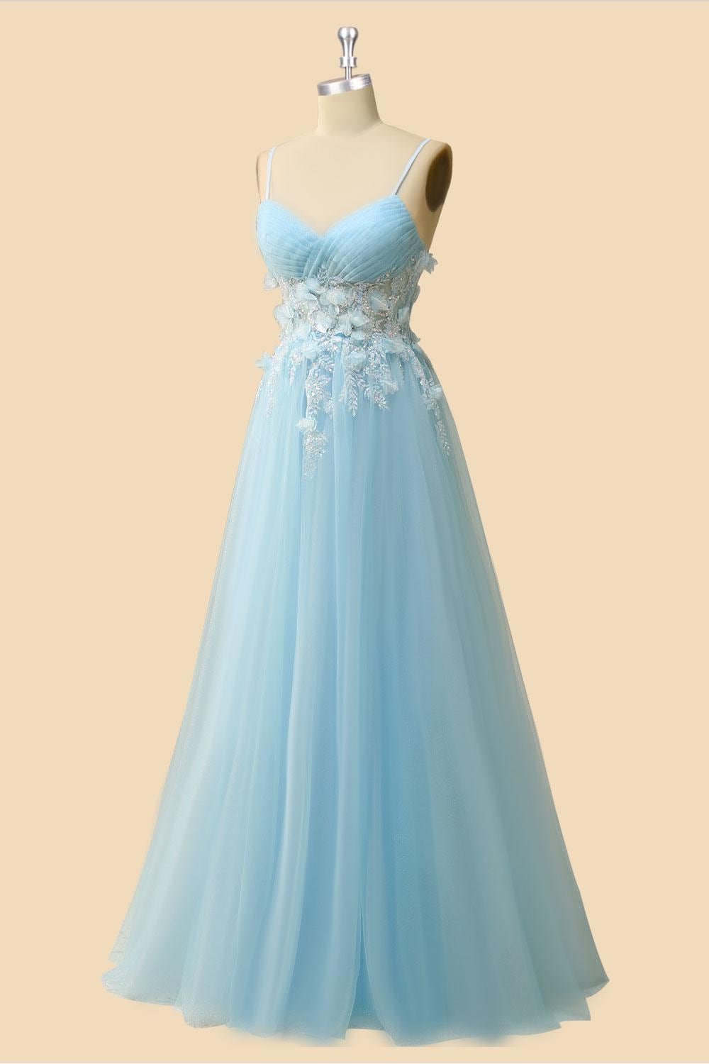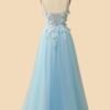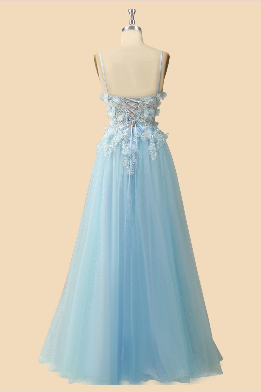 Blue Wedding Dress 3D Floral Applique, Custom Made Satin Bridal Gown, Outdoor Wedding Wear