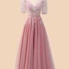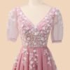 Blush Prom Dress 3D Floral Applique, Custom Made Embroidery Evening Gown, Formal Gala Wear