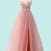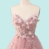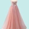 Blush Prom Dress 3D Floral Applique, Custom Made Embroidery Evening Gown, Formal Gala Wear