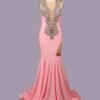 Custom Crystal Pink Mermaid Prom Dress Beaded Luxury Evening Gown Formal Garden Party Attire