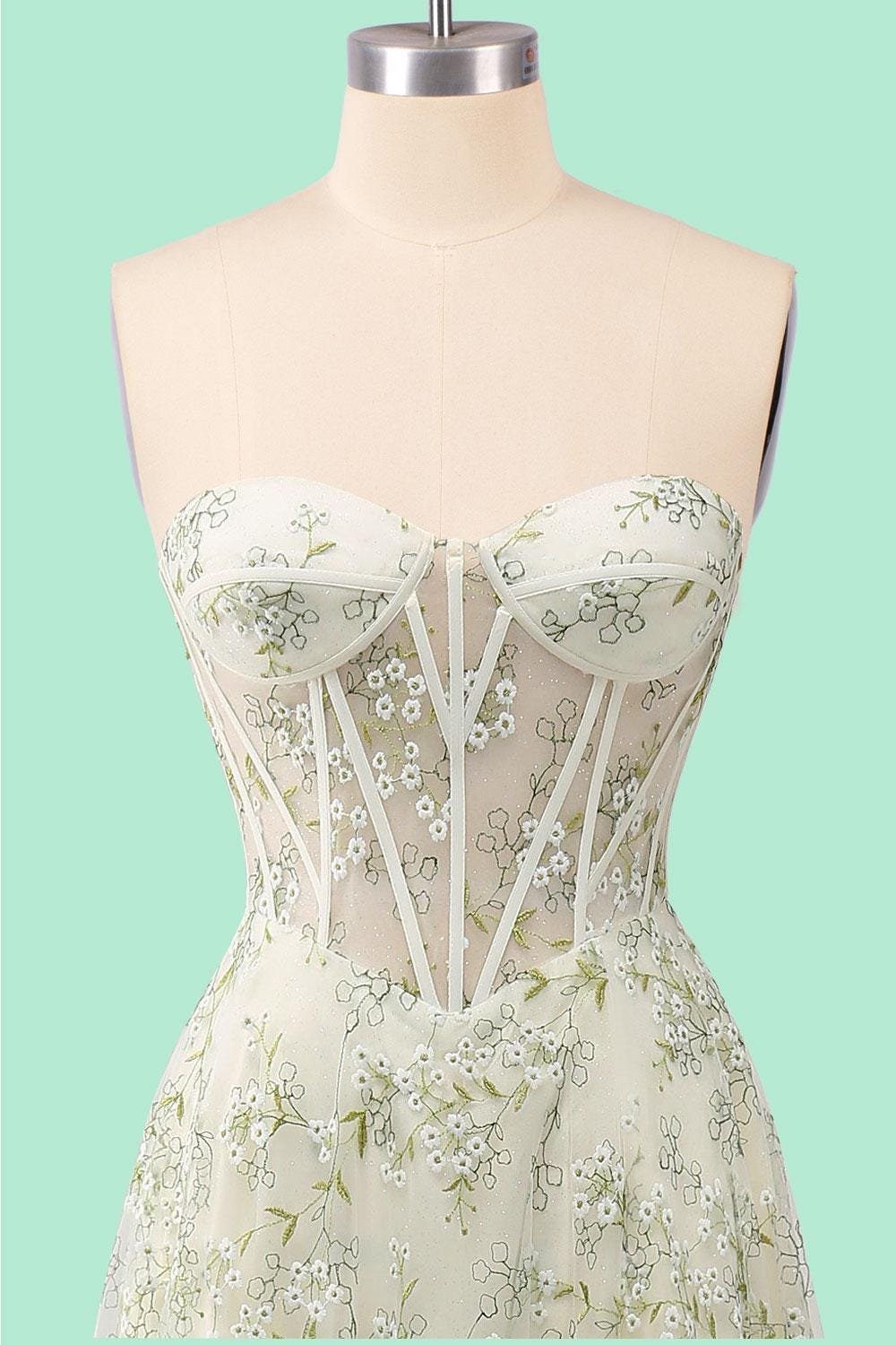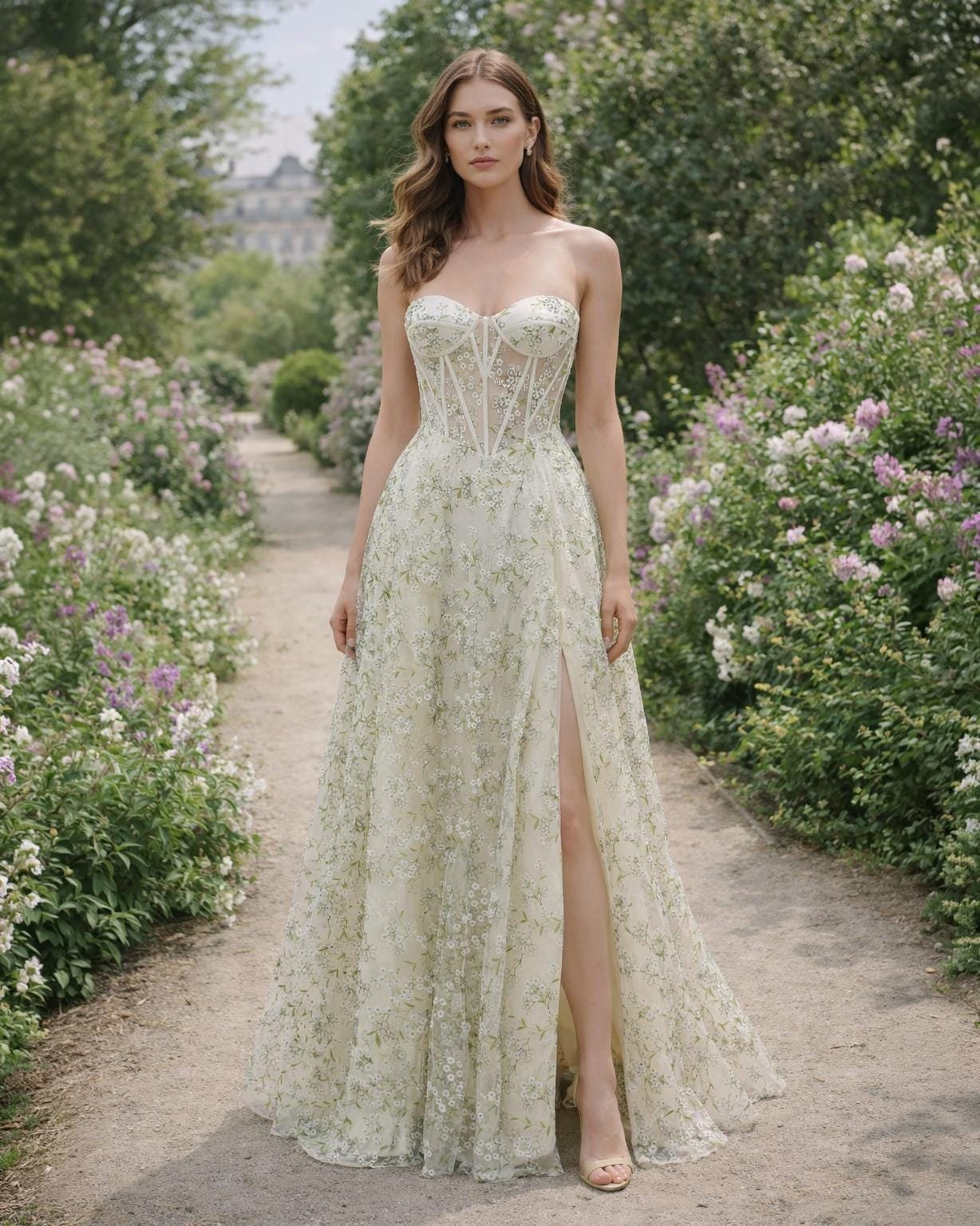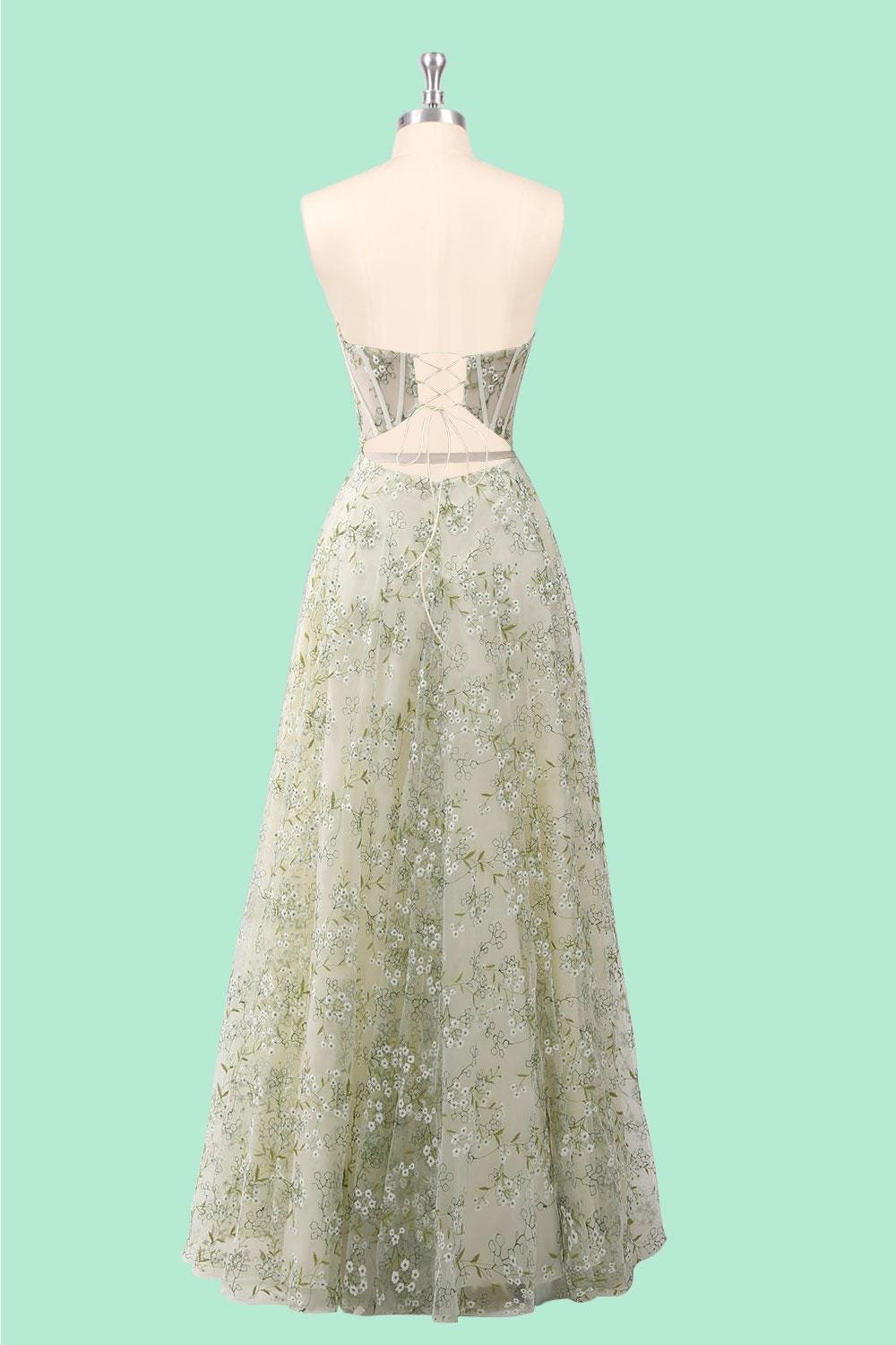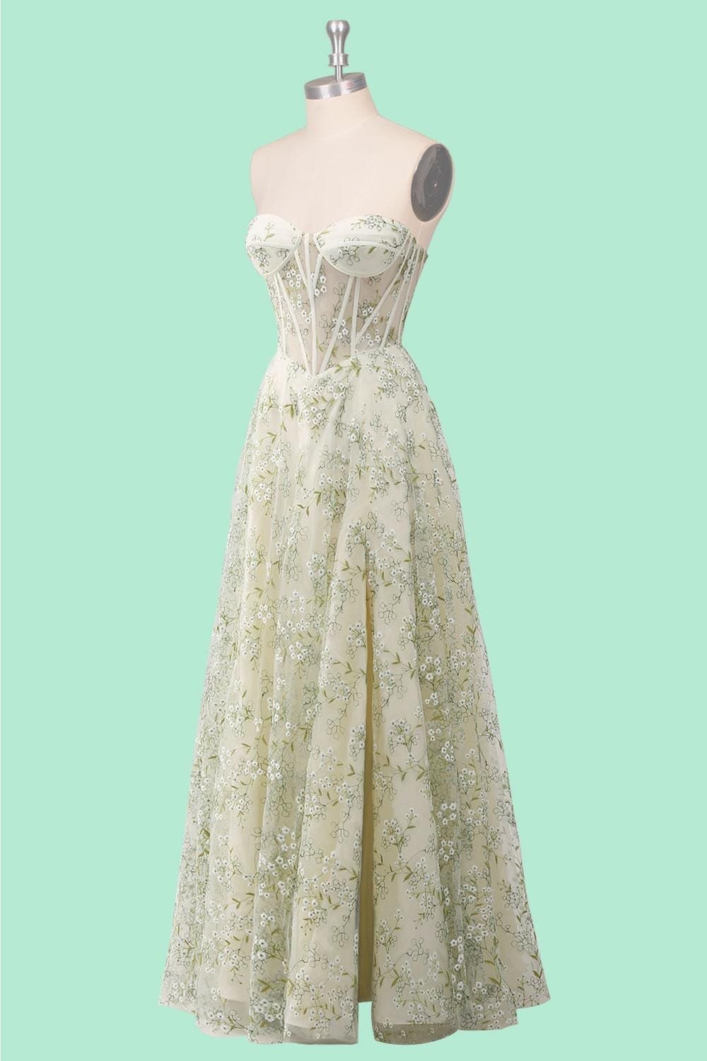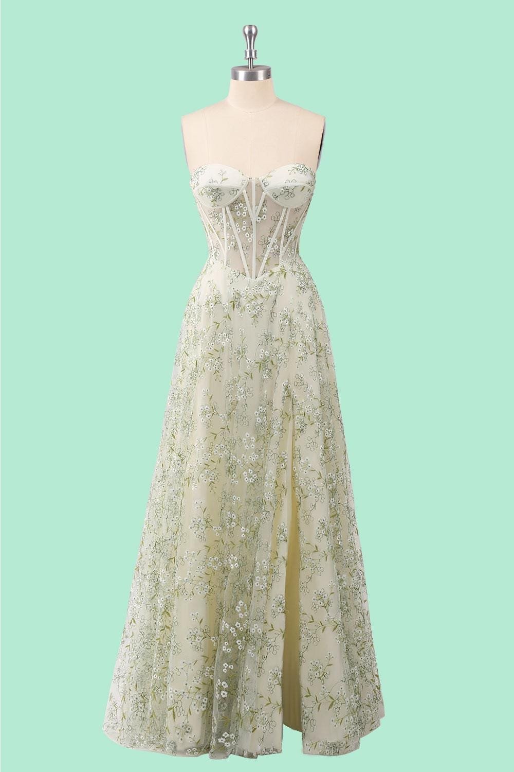 Custom Floral Corset Prom Dress Slit Garden Party Gown Embroidered Lace Wedding Guest Attire