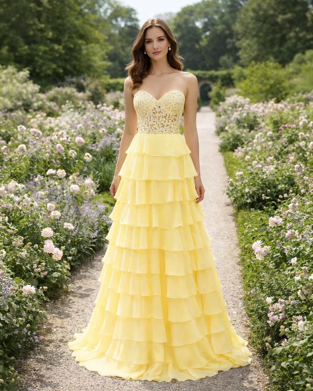 Elevate your presence with this stunning Yellow Tiered Lace Dress, designed with a classic Corset to capture the essence of 2026 elegance. This Ball Gown is handcrafted to your specific measurements for a flawless silhouette.