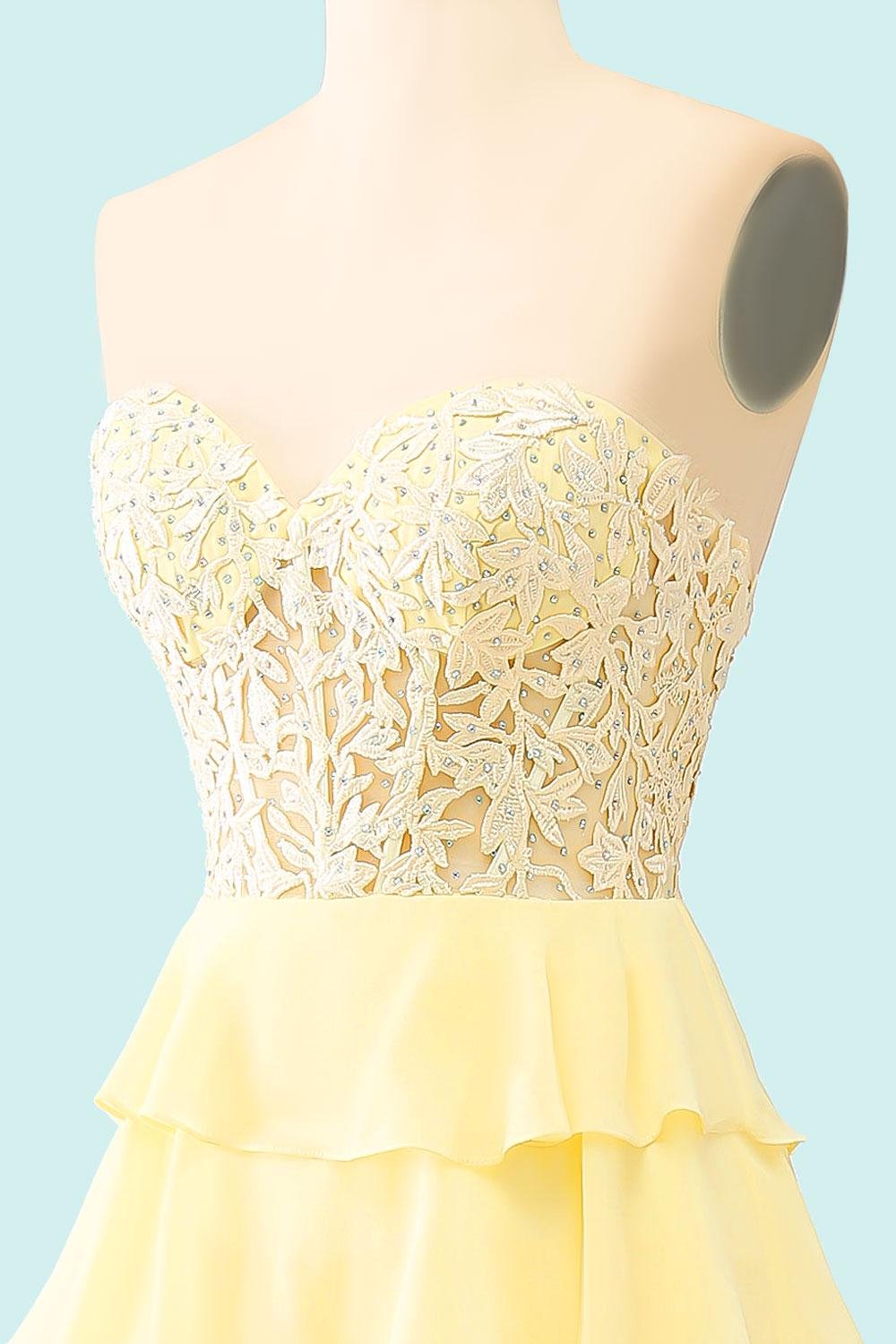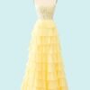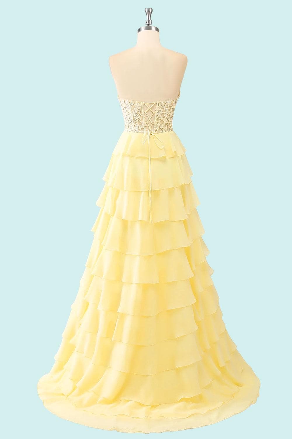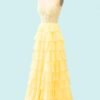 Custom Yellow Tiered Lace Corset Dress Formal Prom Gown Handmade Evening Party Ball Attire