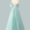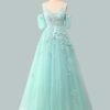Cyan Prom Dress 3D Floral Applique, Custom Made Crystal Evening Gown, Formal Gala Wear