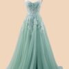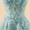 Cyan Prom Dress 3D Floral Applique, Custom Made Embroidery Evening Gown, Formal Gala Wear