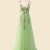 Green Prom Dress 3D Floral Applique, Custom Made Embroidery Evening Gown, Formal Gala Wear