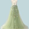 Green Prom Dress 3D Floral Applique, Custom Made Satin Evening Gown, Formal Gala Wear