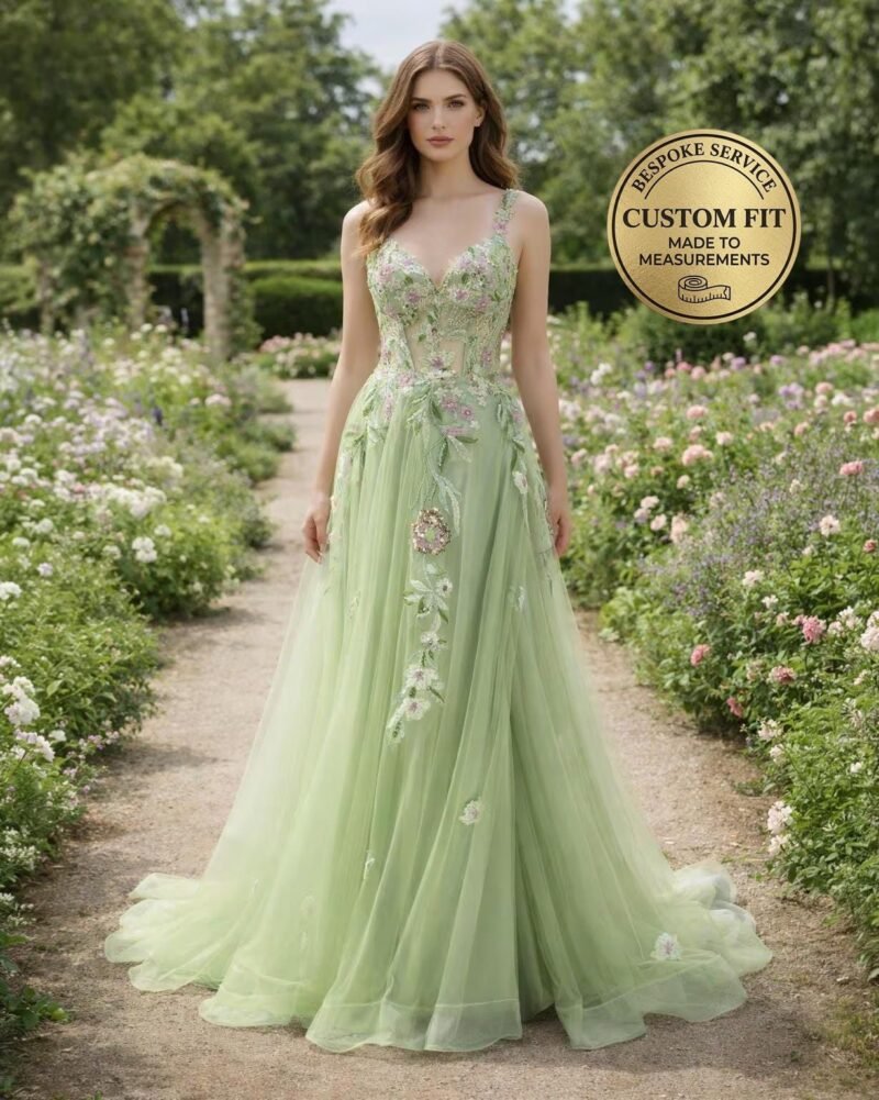 Elevate your presence with this stunning Green Prom Dress 2026, designed with 3D Floral Applique to capture the essence of 2026 elegance. This Evening Gown is handcrafted to your specific measurements for a flawless silhouette.