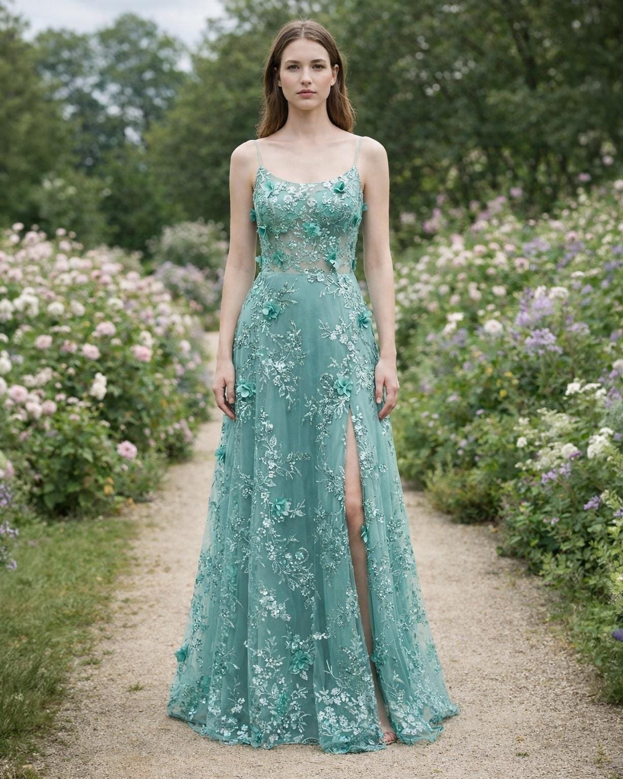 Elevate your presence with this stunning Green Wedding Dress, designed with 3D Floral Applique to capture the essence of 2026 elegance. This Bridal Gown is handcrafted to your specific measurements for a flawless silhouette.