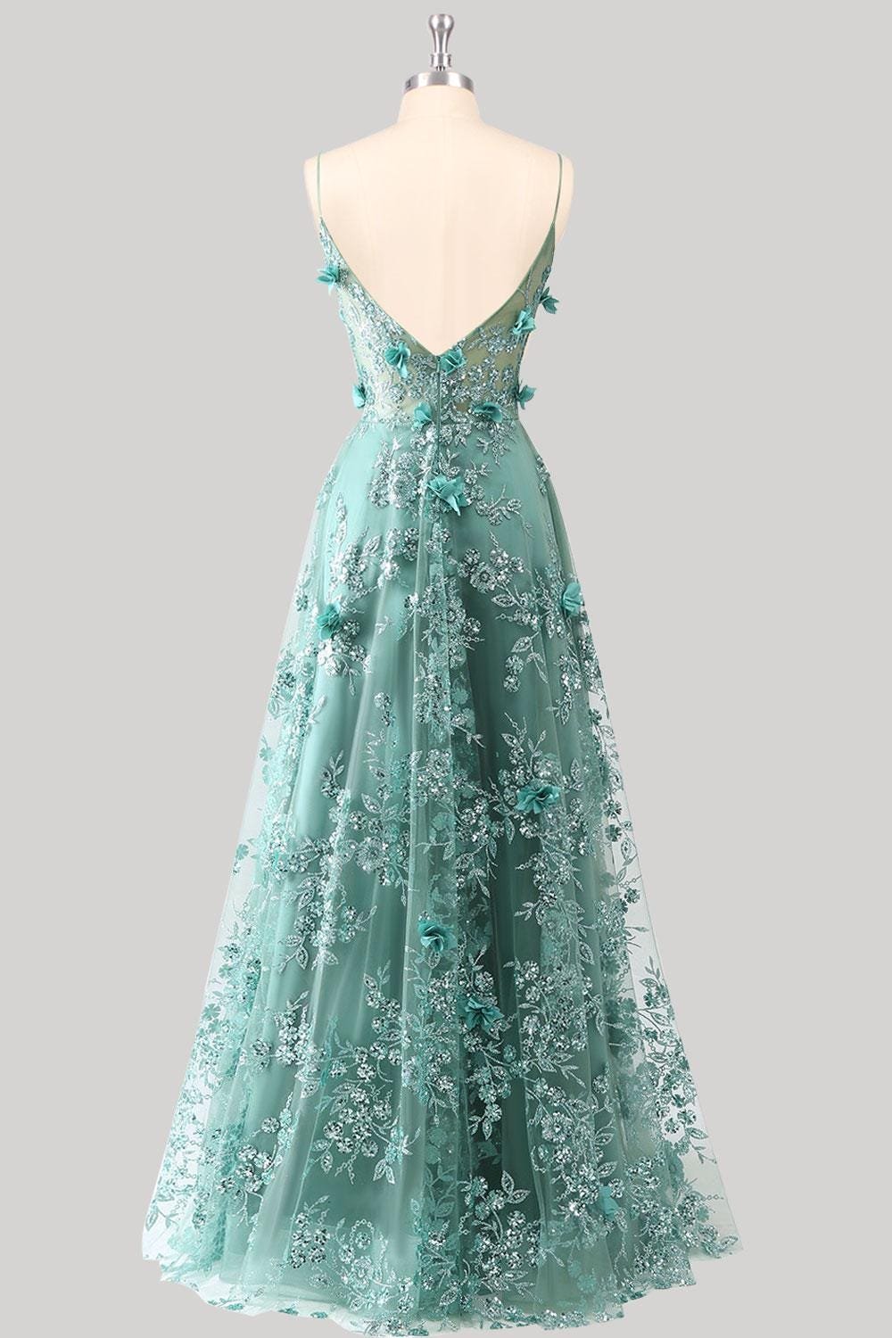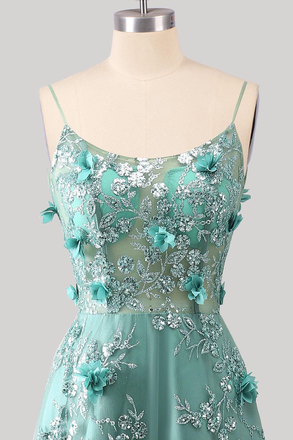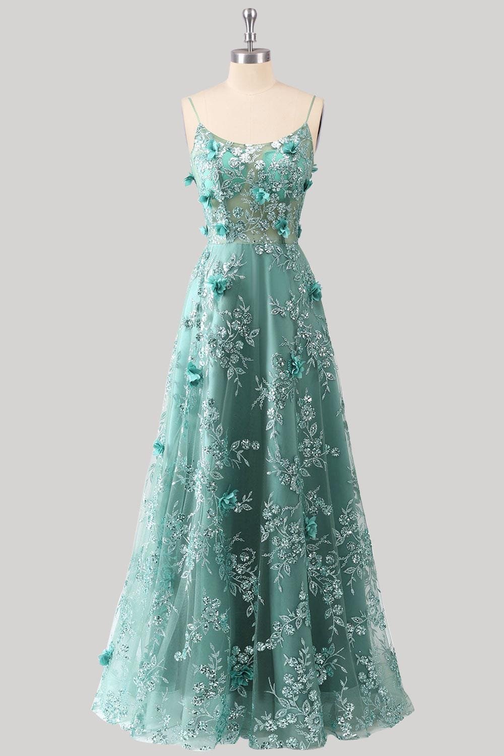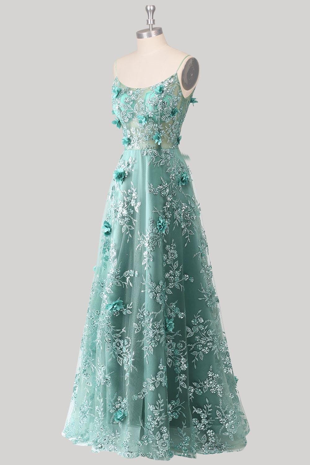 Green Wedding Dress 3D Floral Applique, Custom Made Satin Bridal Gown, Outdoor Wedding Wear