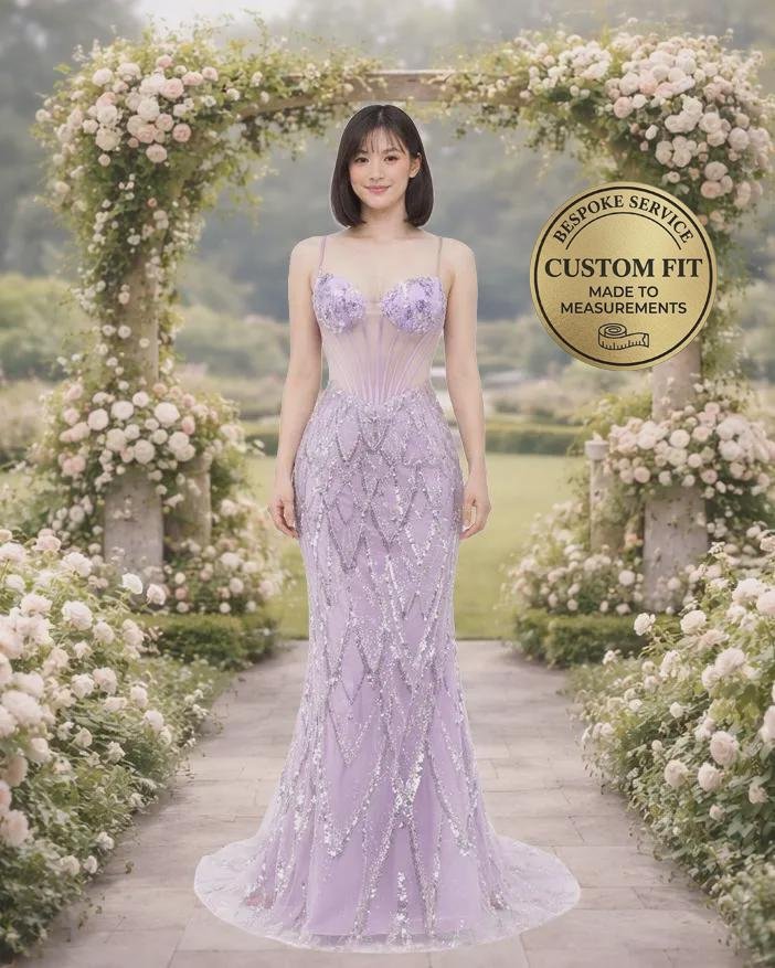 Elevate your presence with this stunning Lilac Prom Dress 2026, designed with Regencycore Lace to capture the essence of 2026 elegance. This Evening Gown is handcrafted to your specific measurements for a flawless silhouette.
