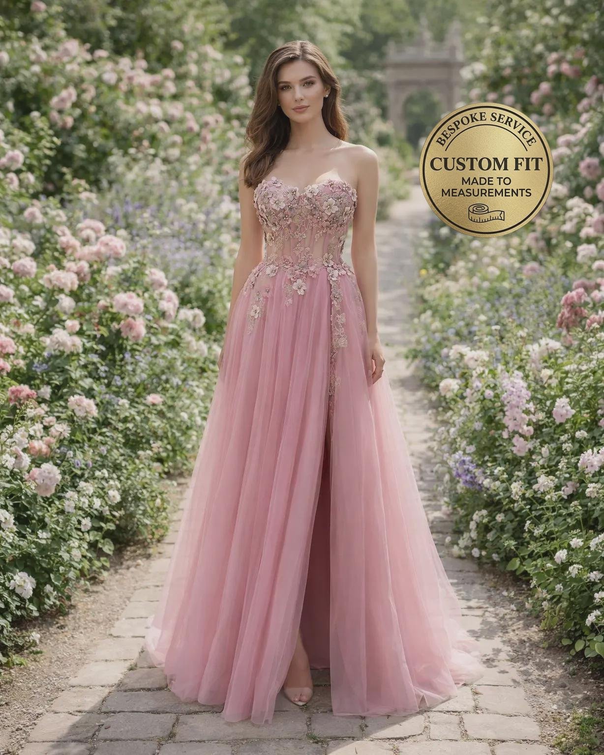 Elevate your presence with this stunning Pink Prom Dress 2026, designed with 3D Floral Applique to capture the essence of 2026 elegance. This Evening Gown is handcrafted to your specific measurements for a flawless silhouette.