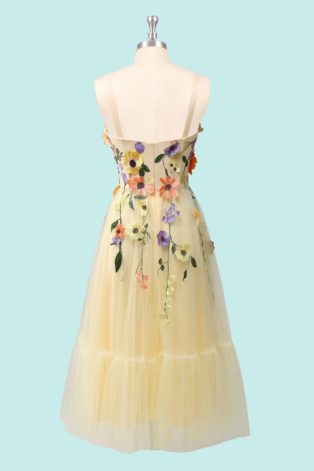 Prom Dress Yellow 3D Floral Applique, Custom Made Embroidery Evening Gown, Formal Gala Wear