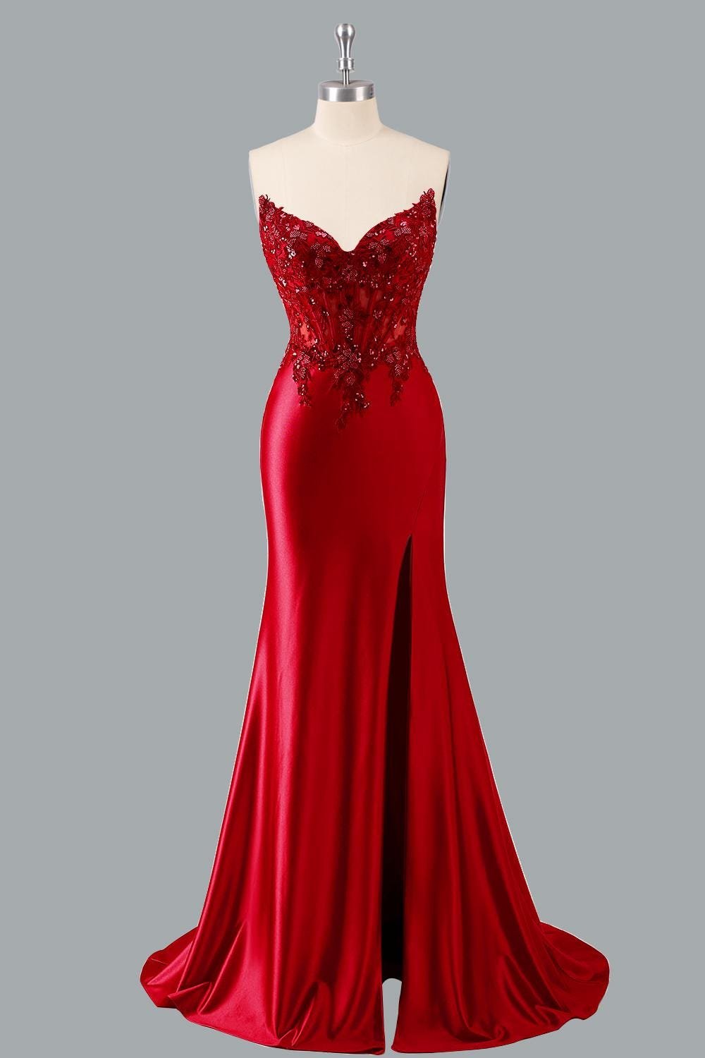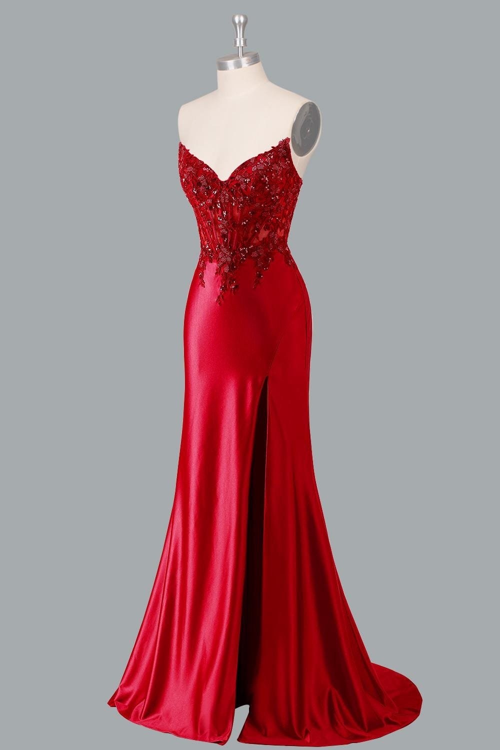 Red Prom Dress 2026 Regencycore Lace, Custom Made Satin Evening Gown, Formal Gala Wear