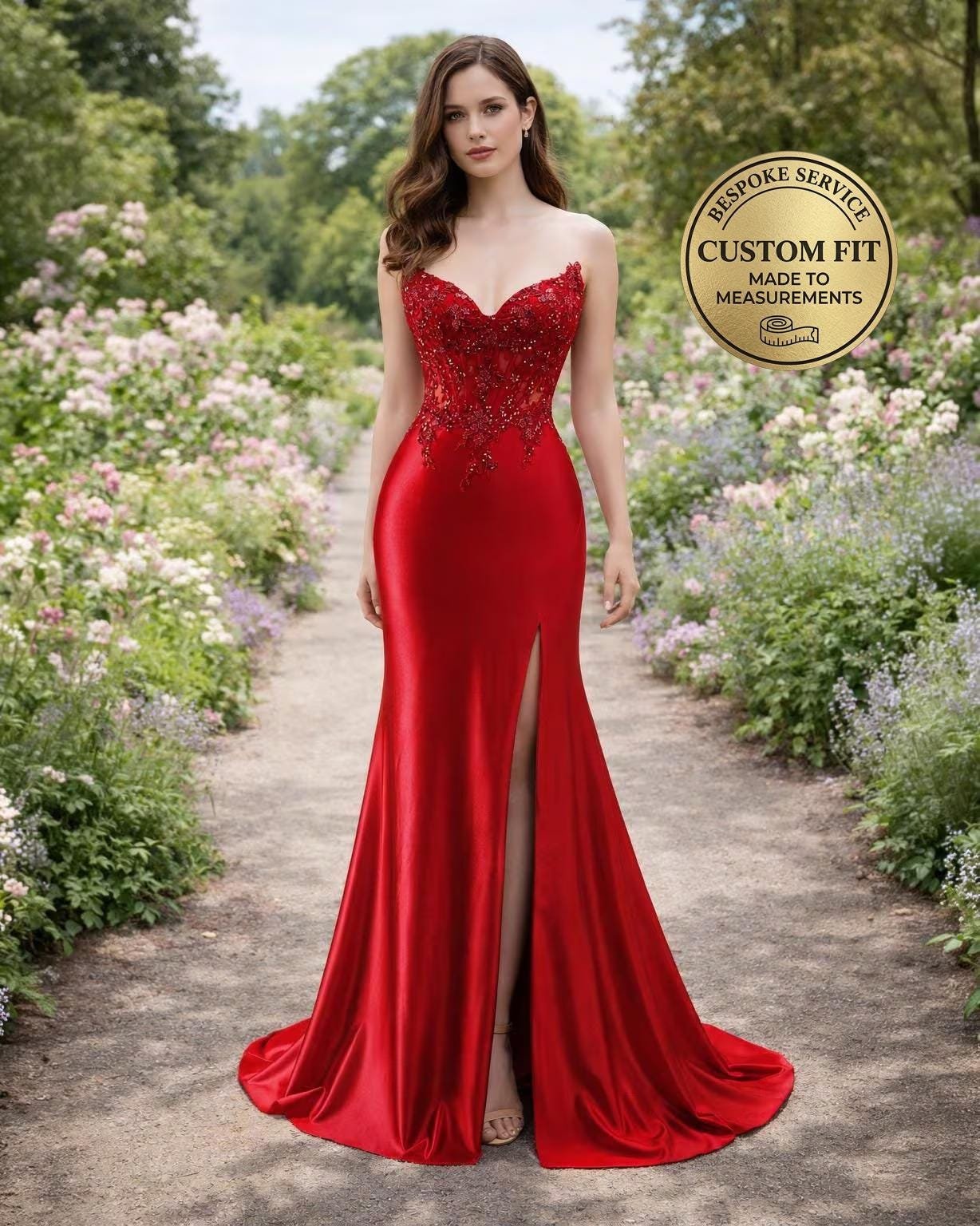 Elevate your presence with this stunning Red Prom Dress 2026, designed with Regencycore Lace to capture the essence of 2026 elegance. This Evening Gown is handcrafted to your specific measurements for a flawless silhouette.