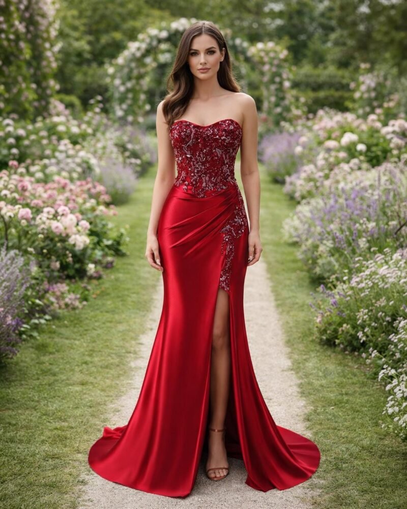 Elevate your presence with this stunning Red Prom Dress 2026, designed with 3D Floral Applique to capture the essence of 2026 elegance. This Evening Gown is handcrafted to your specific measurements for a flawless silhouette.