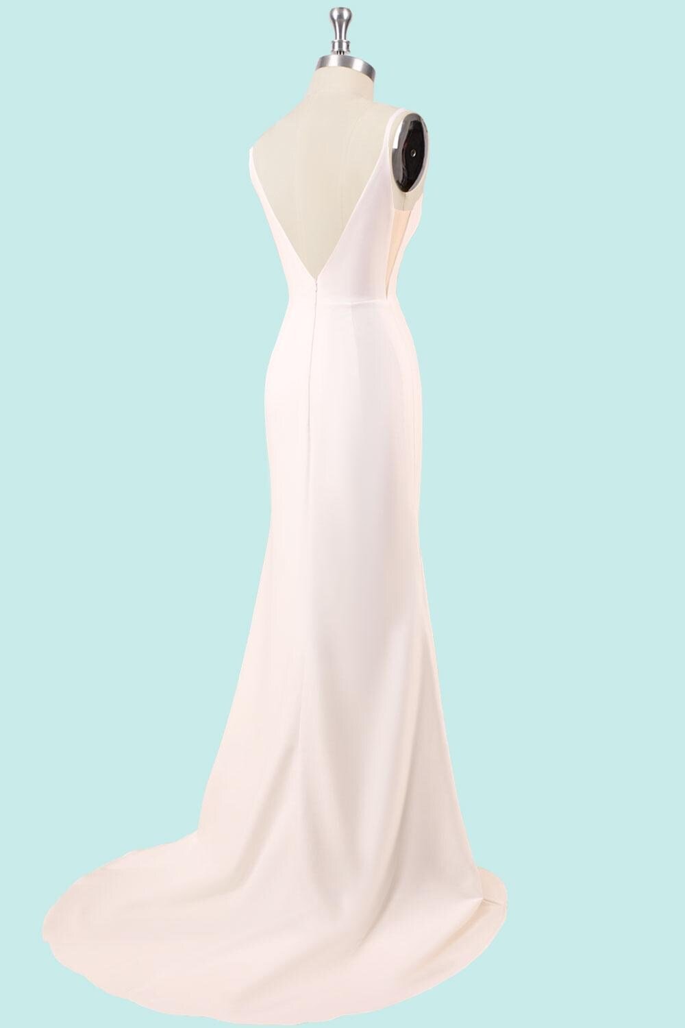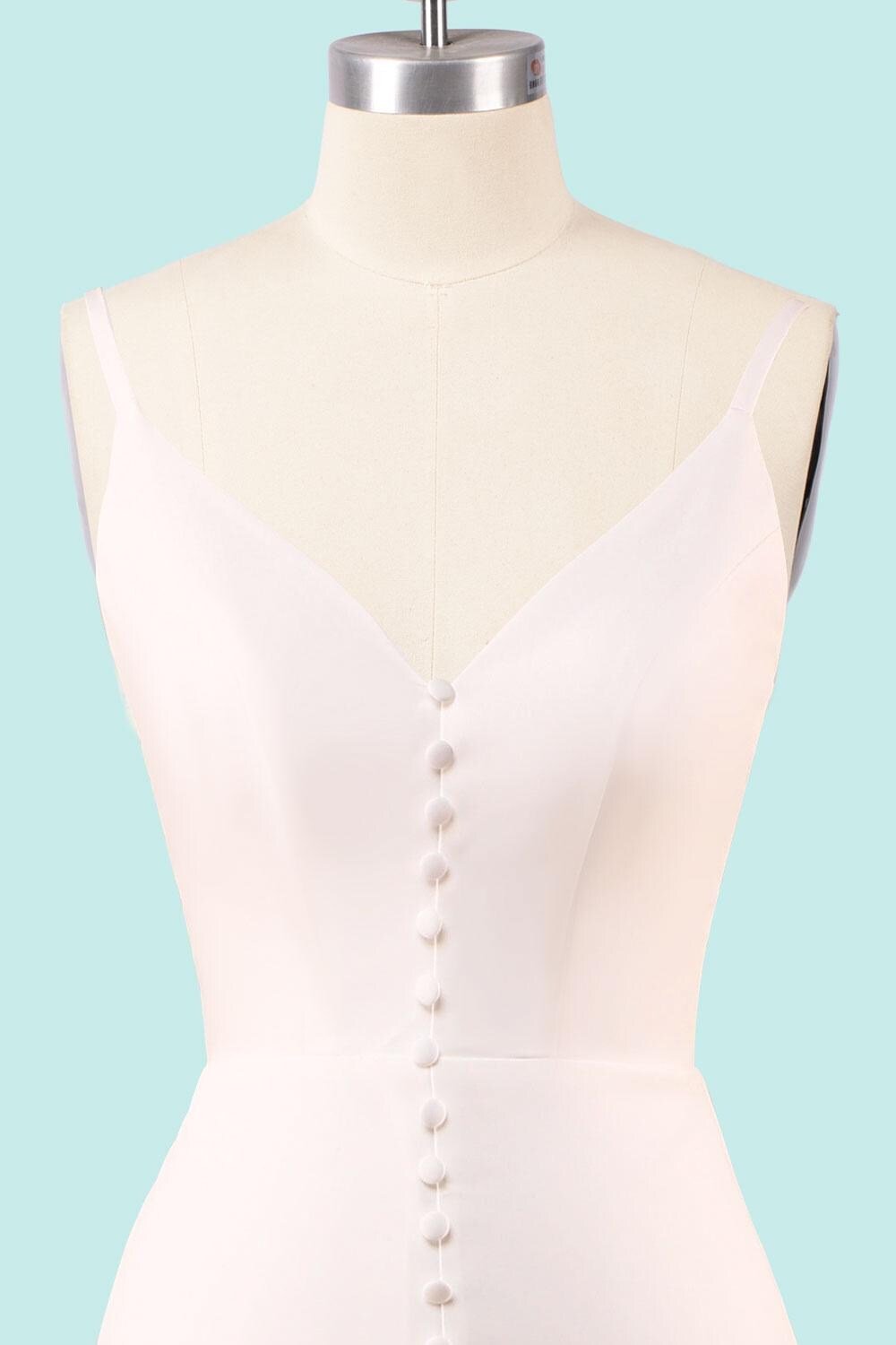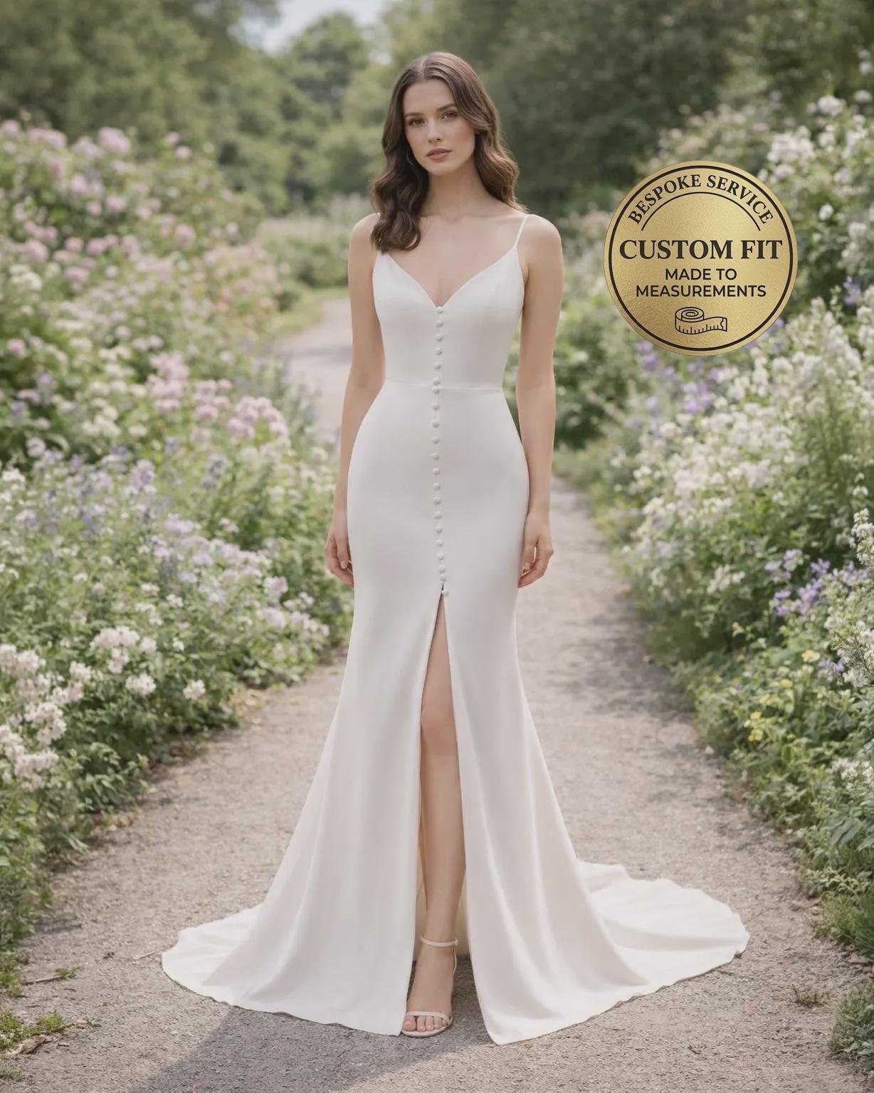 White Wedding Dress Sleek Minimalism, Custom Made Satin Bridal Gown, Outdoor Wedding Wear