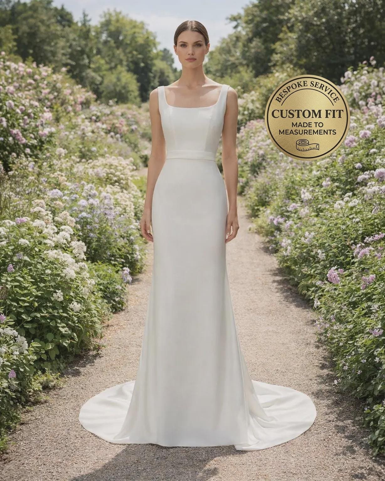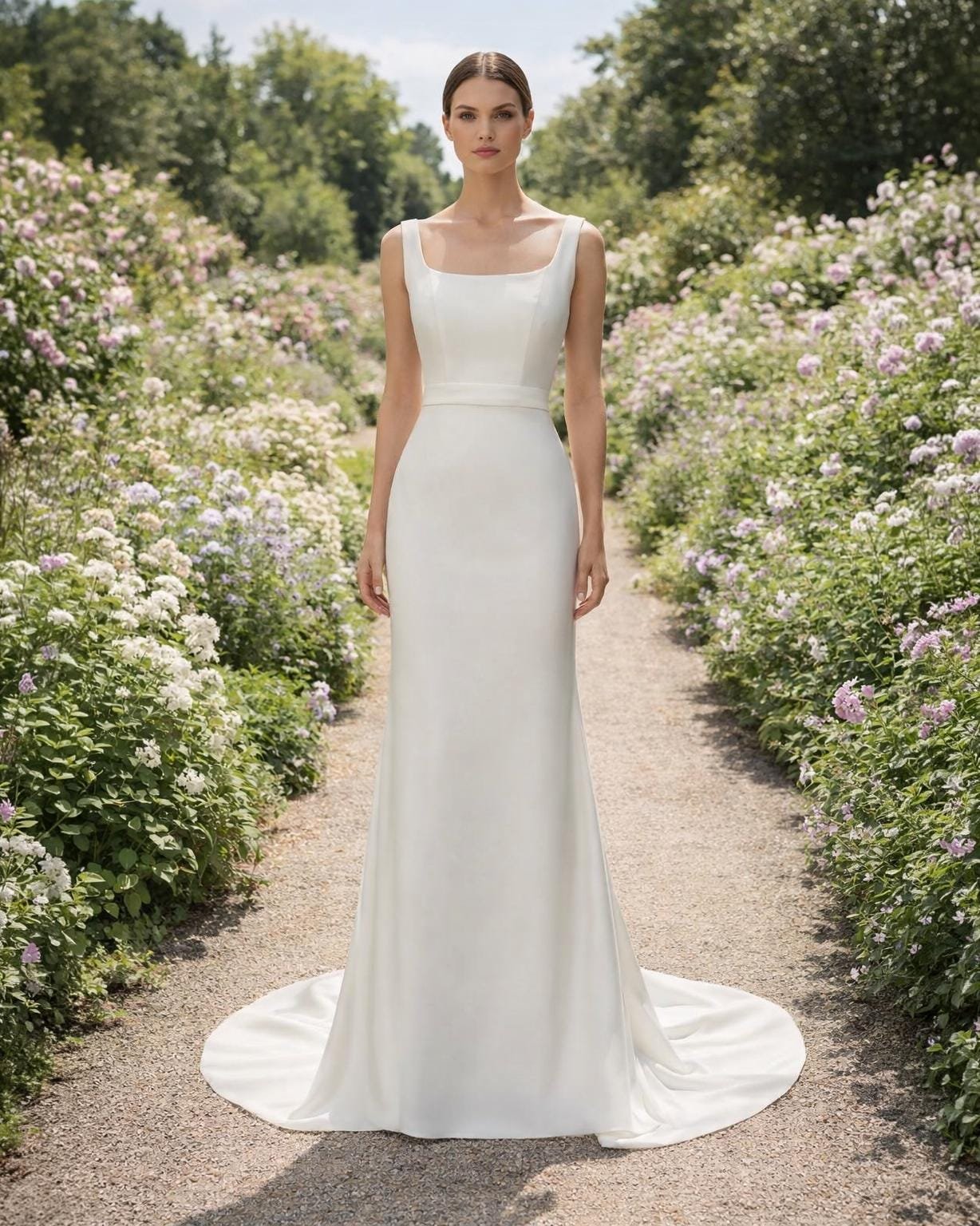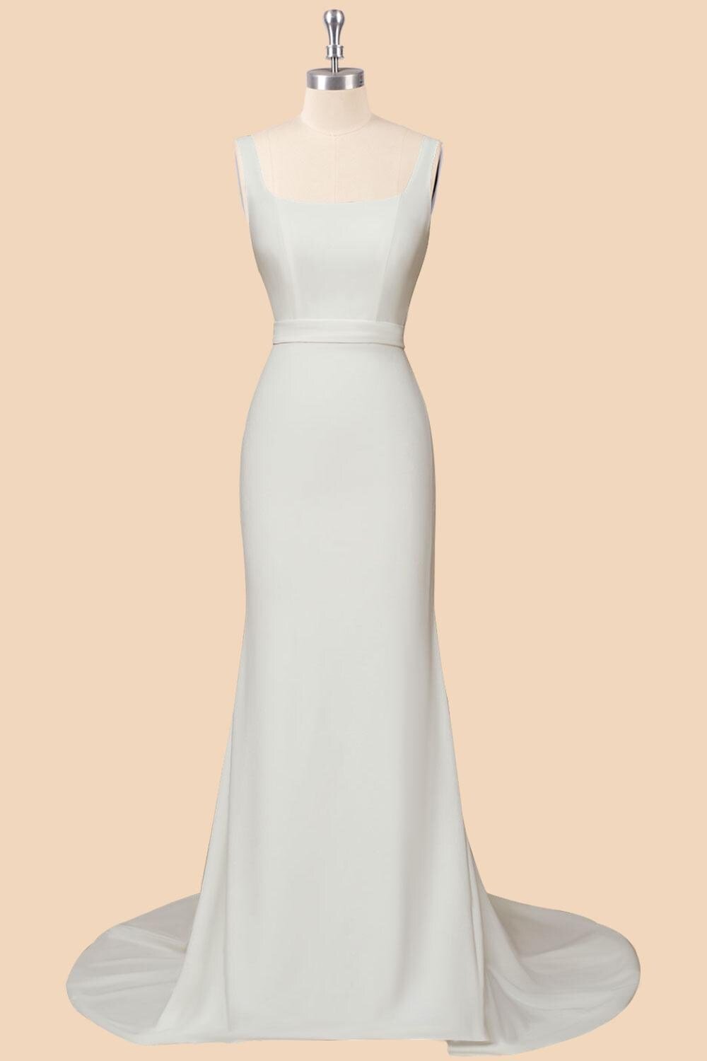 White Wedding Dress Sleek Minimalism, Custom Made Satin Bridal Gown, Outdoor Wedding Wear