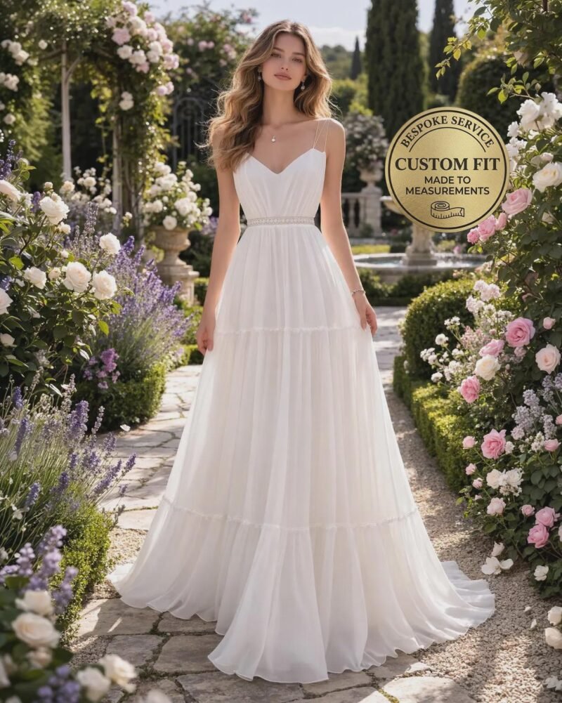 Elevate your presence with this stunning White Wedding Dress, designed with Sleek Minimalism to capture the essence of 2026 elegance. This Bridal Gown is handcrafted to your specific measurements for a flawless silhouette.